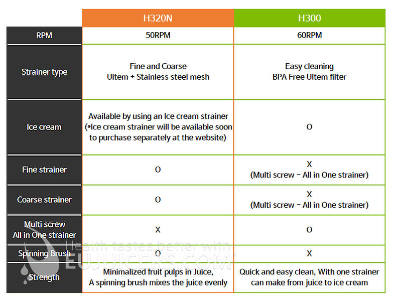 · Sila: Minimálna dužina ovocia v šťave, rotujúca kefa rovnomerne premieša šťavu (H320N) | Rýchle a jednoduché čistenie, s jedným filtrom pripravíte všetko od ovocnej šťavy až po zmrzlinu (H300)